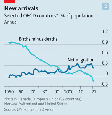 Rika länder minskar i befolkningsmängd – om det inte vore för migrationen.